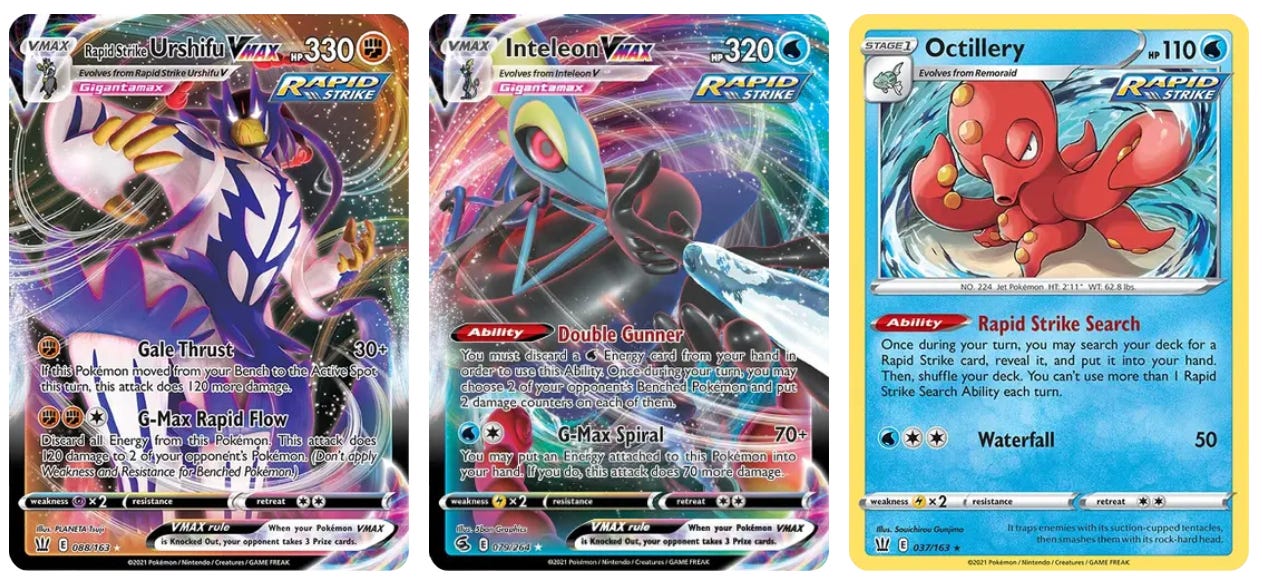 Tommy is sticking with their ride or die deck, Rapid Strike. Over the holidays, we played a lot of Pokemon together, and both kids let me use the Rapid Strike deck - and at this point, I totally get it; it’s a really fun deck to play with a lot of different ways to play it. It is also in the end stages of its lifecyle: almost every card in it will have been rotated out of legal play by the European Championship in April. So at some point this season “What Tommy is playing” will change. To what? That remains a mystery.