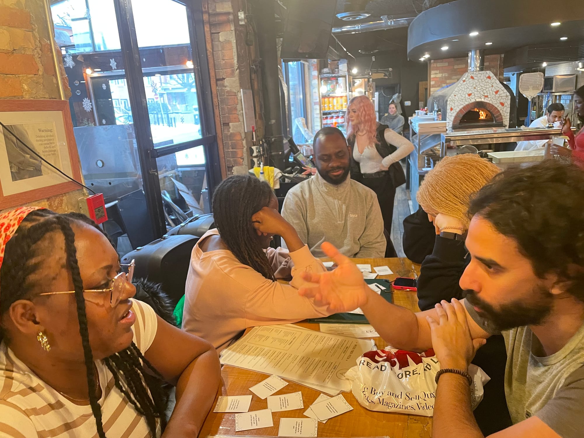 And then I realized that I might just have an opportunity to do a first playtest thanks to an extended layover in Toronto, home of my dear friend and fellow bookstore lover Tolu. So I messaged her and said, “hey, want to do this thing when I’m in town? And if so, do you think you can round up some friends?” And on both counts, she did!